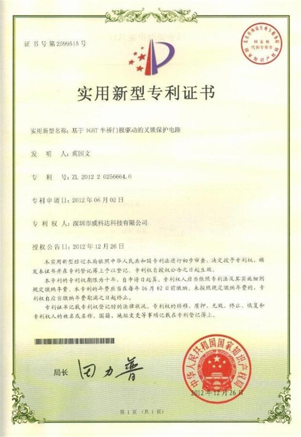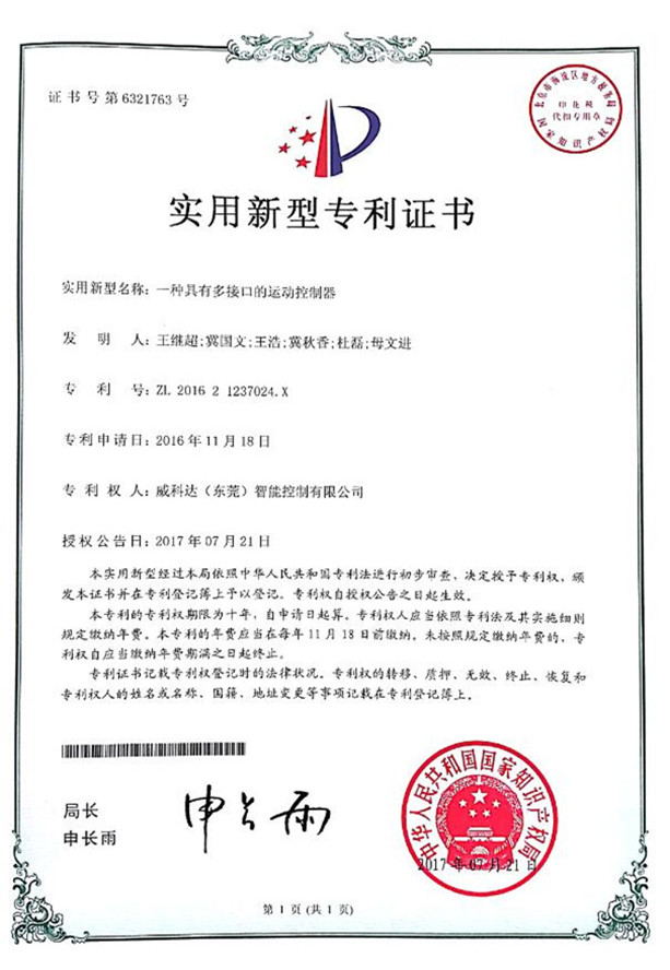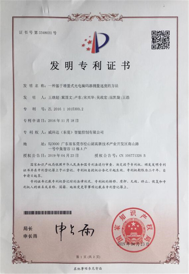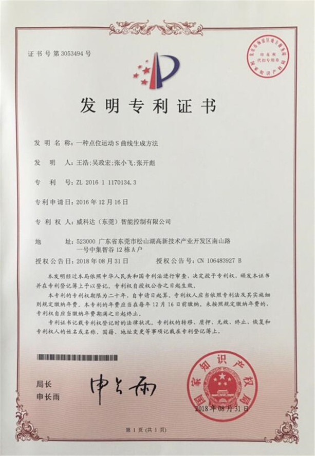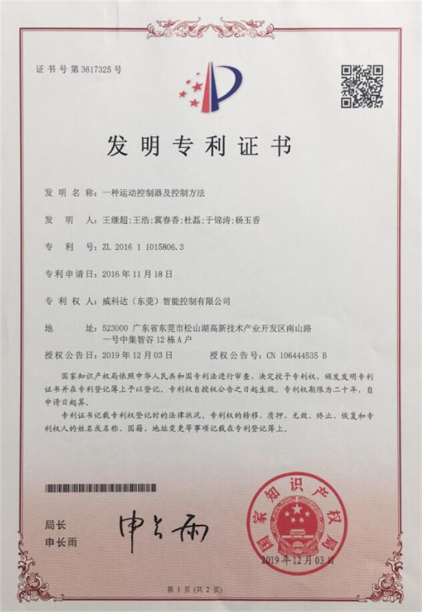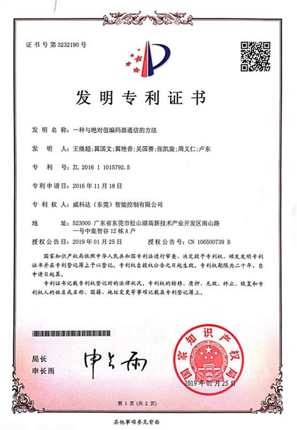 鏈刀伺服驅(qū)動裝置專利證書